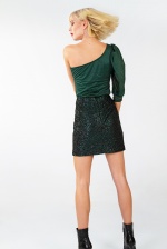 Αντικαθιστά επάξια μια κομψή, βραδινή μπλούζα. Το μονό μανίκι κάνει άκρως γοητευτικό το ντύσιμο σου και οι αστραφτερές λεπτομέρειες στο ύφασμα θα σου δώσουν μια σίγουρα λαμπερή εμφάνιση.