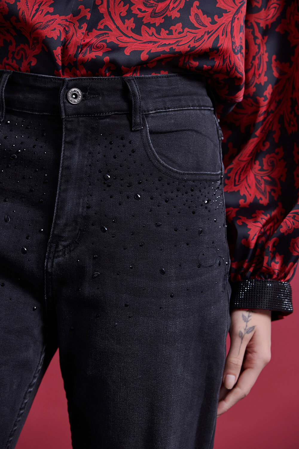 Είναι επίσης μεγάλη τάση πανω στα τζιν. Αν ψάχνετε έναν τρόπο να ντυθείτε casual για μια γιορτινή εκδήλωση, αλλά να εξακολουθείτε να έχετε εορταστικό ντύσιμο, μπορείτε να δοκιμάσετε ένα τζιν διακοσμημένο με πέρλες ή ένα τοπ με κρύσταλλα συνδυάζοντας το με ένα τζιν ή με παντελόνι.