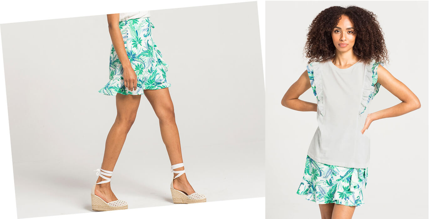 Όπως τη floral μίνι φουστίτσα που ζαχάρωνες, μαζί με το ασορτί μπλουζάκι. Το τέλειο girly outfit για πρωινές ή απογευματινές εμφανίσεις στο νησί, αλλά και στην πόλη.