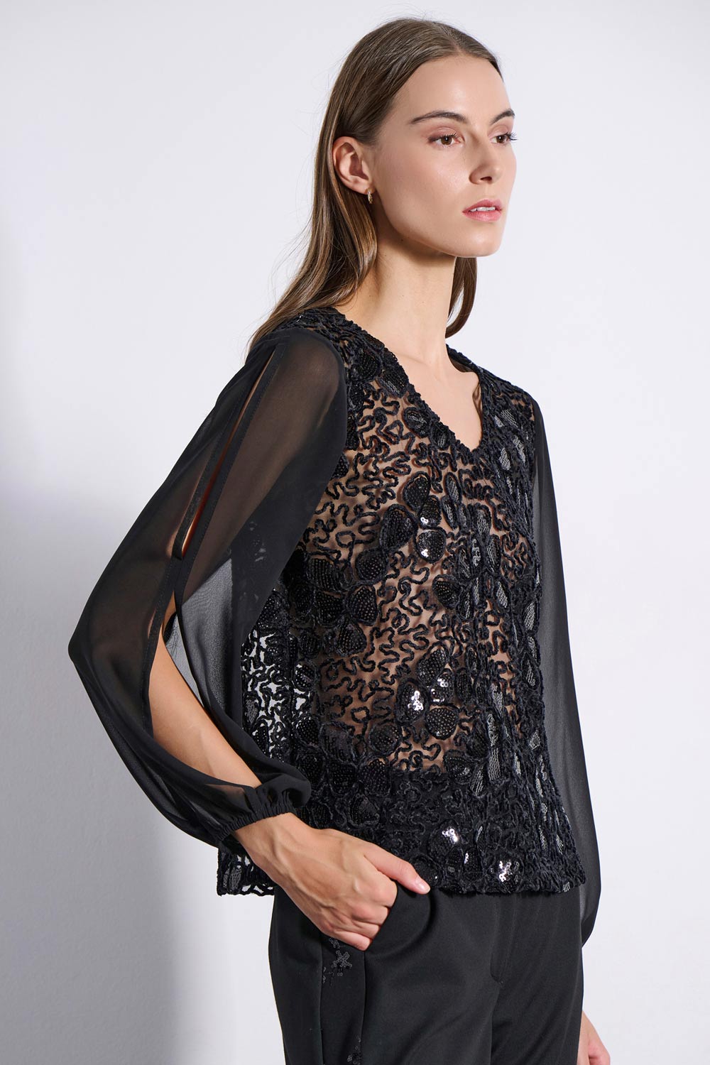 • ΚΕΝΤΗΤΗ ΜΠΛΟΥΖΑ ΜΕ ΒΕΛΟΥΔΙΝΟ ΦΛΟΡΑΛ ΚΑΙ ΠΑΓΙΕΤΕΣ