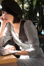 THE MODEL ON THE PHOTO WEARS SMALL AND HER BODY MEASUREMENTS ARE: