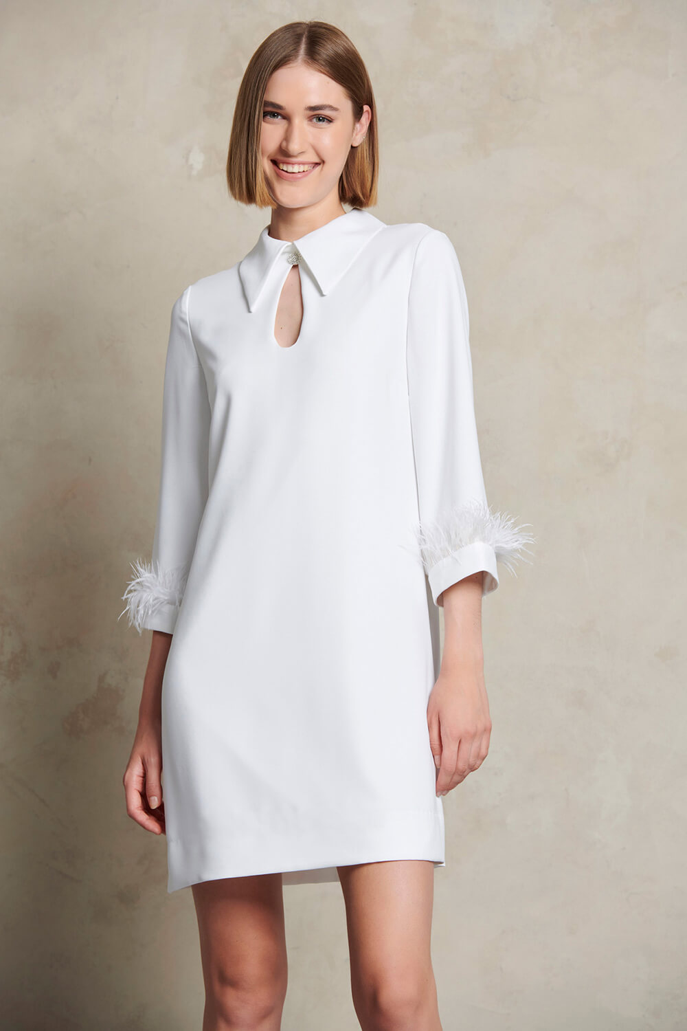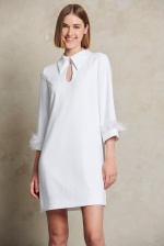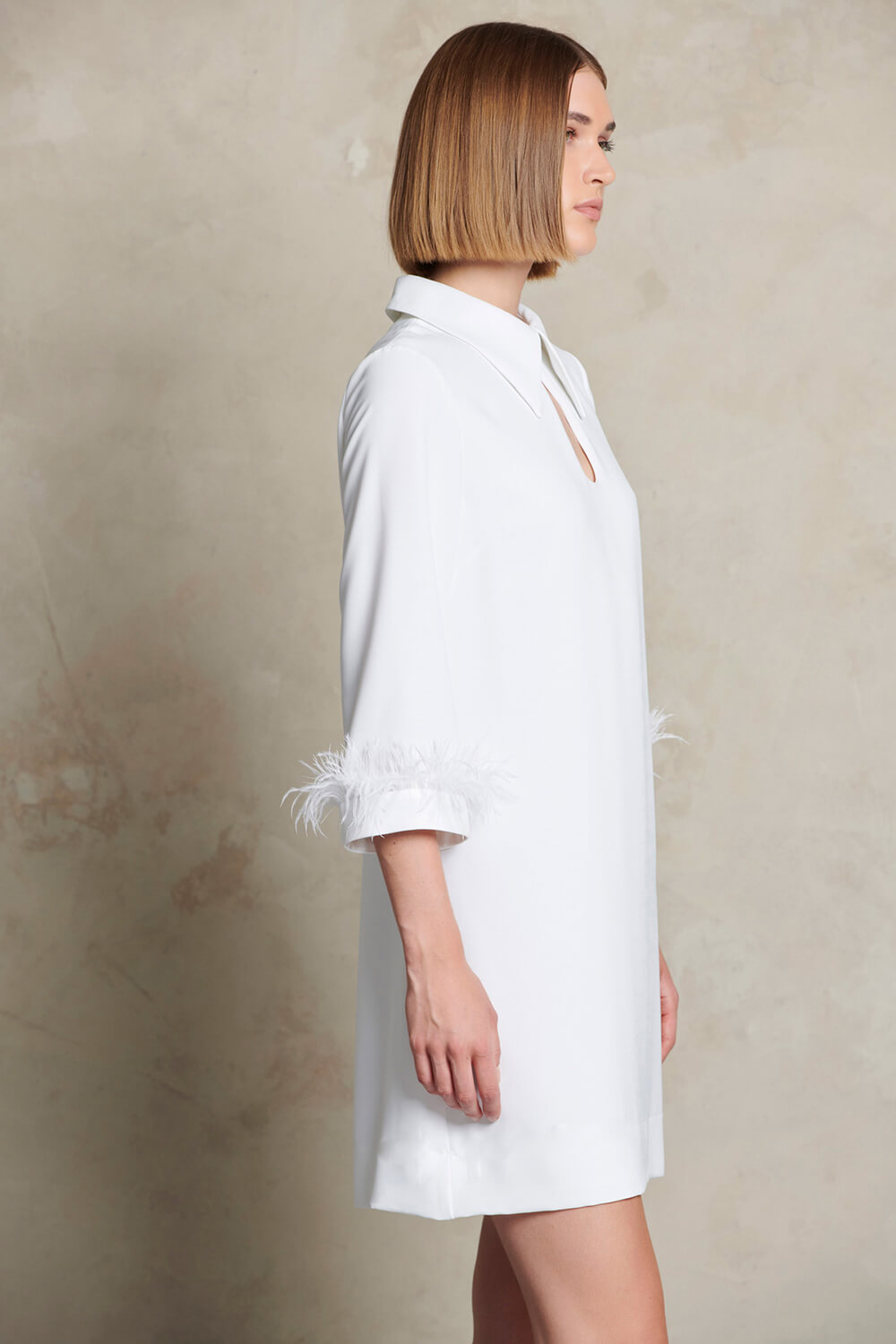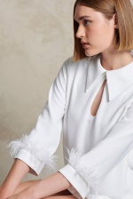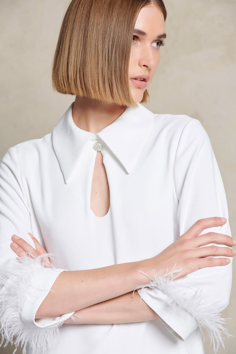• 3/4 CUFFED SLEEVES WITH DECORATIVE FEATHERS
