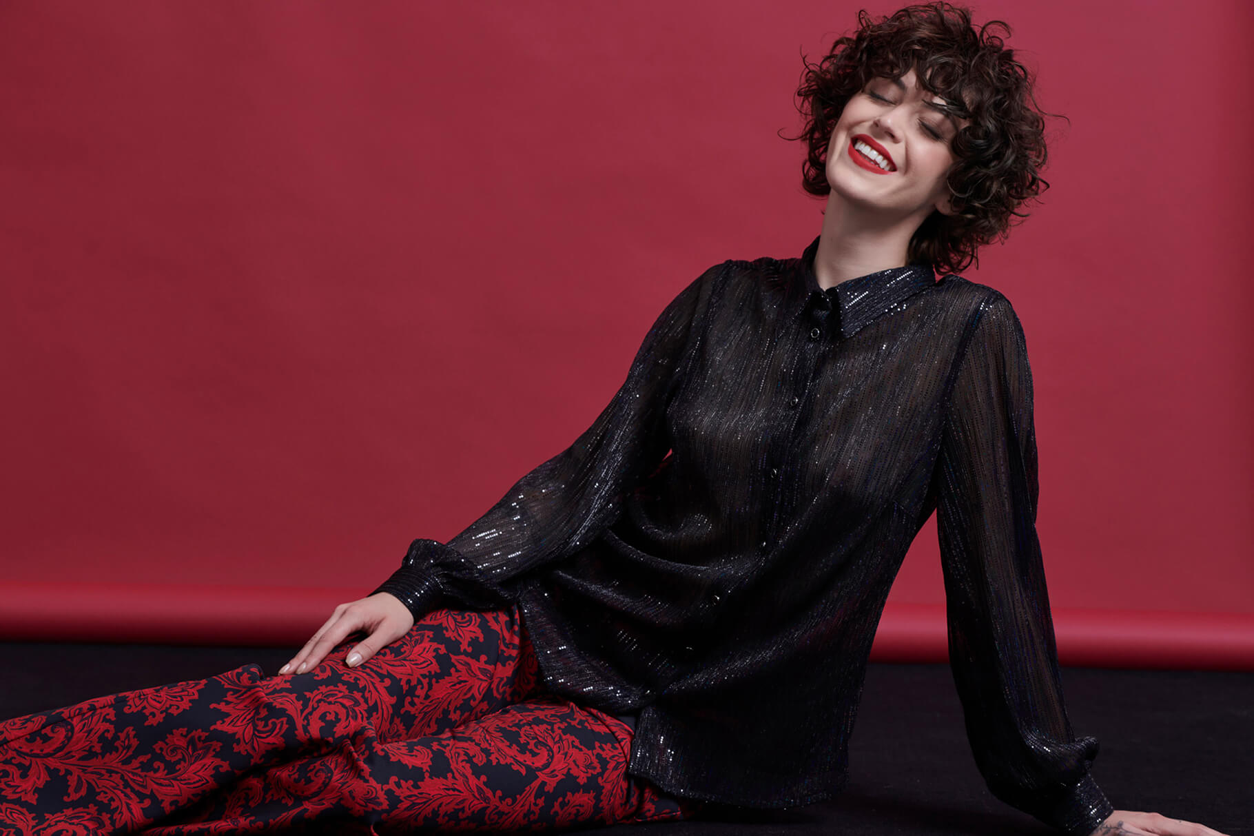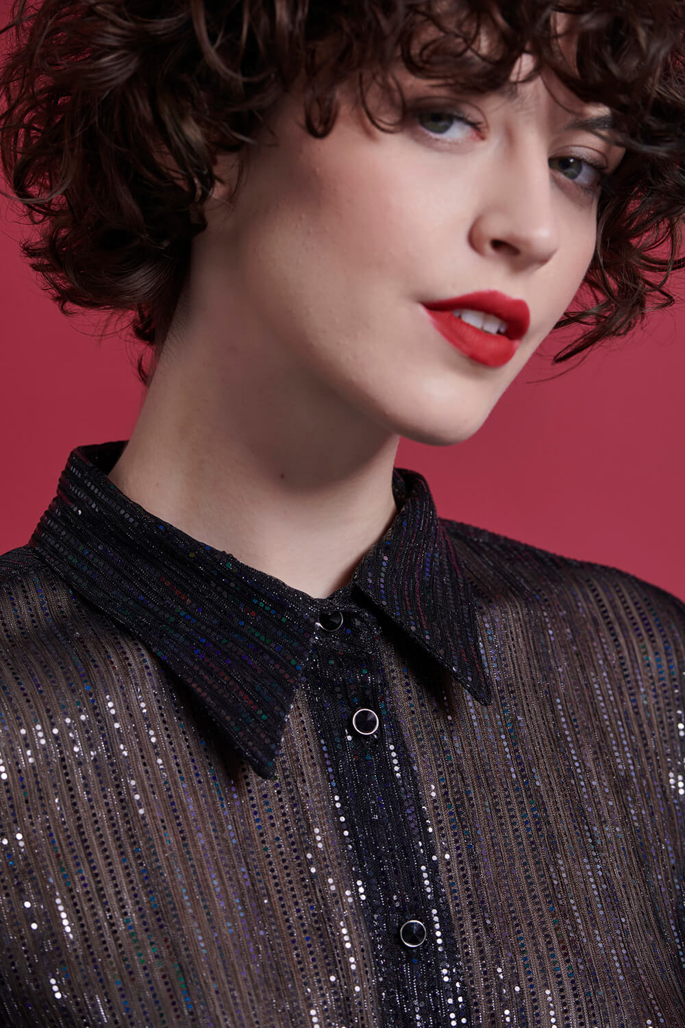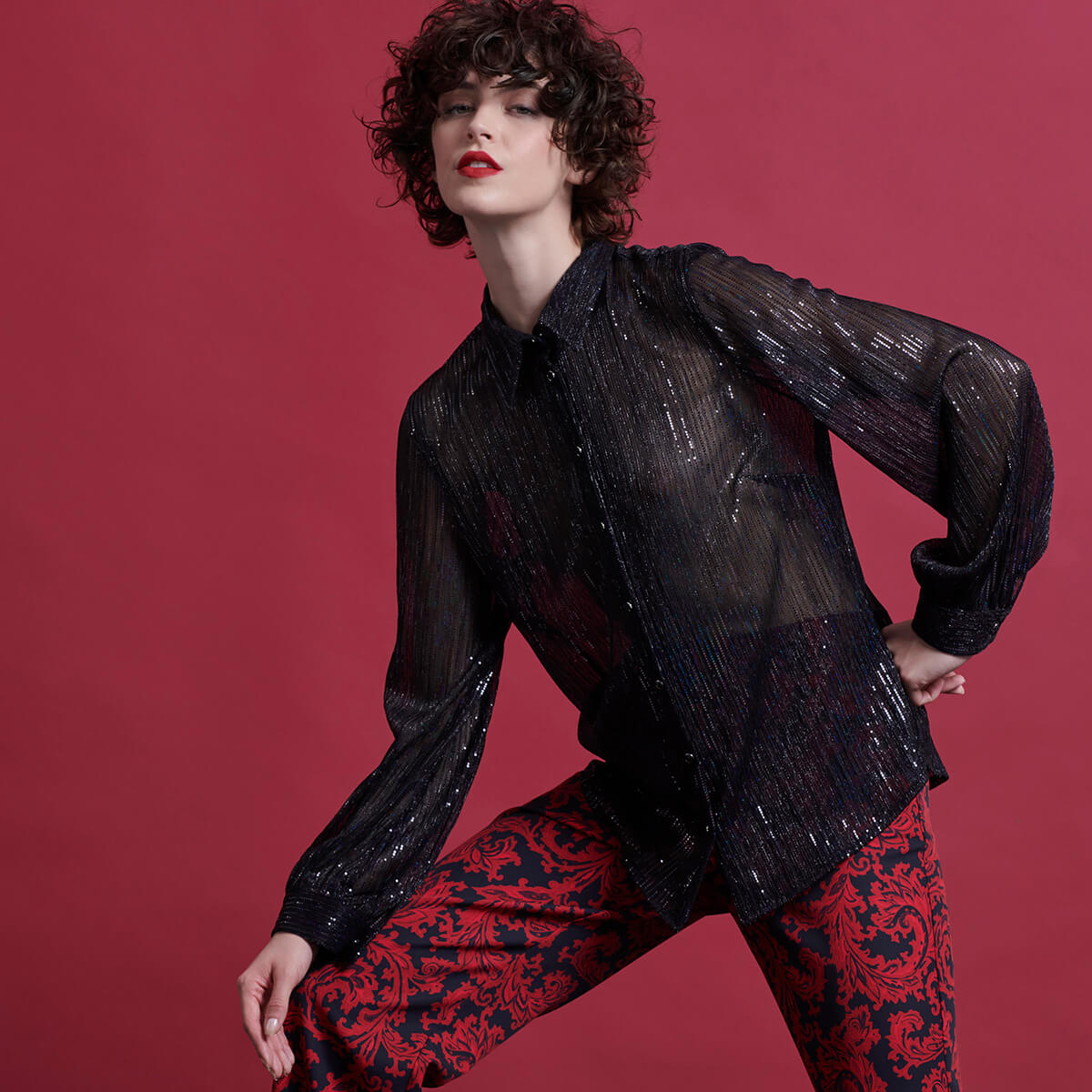 • LONG CUFFED SLEEVES WITH A STRASSED BUTTON