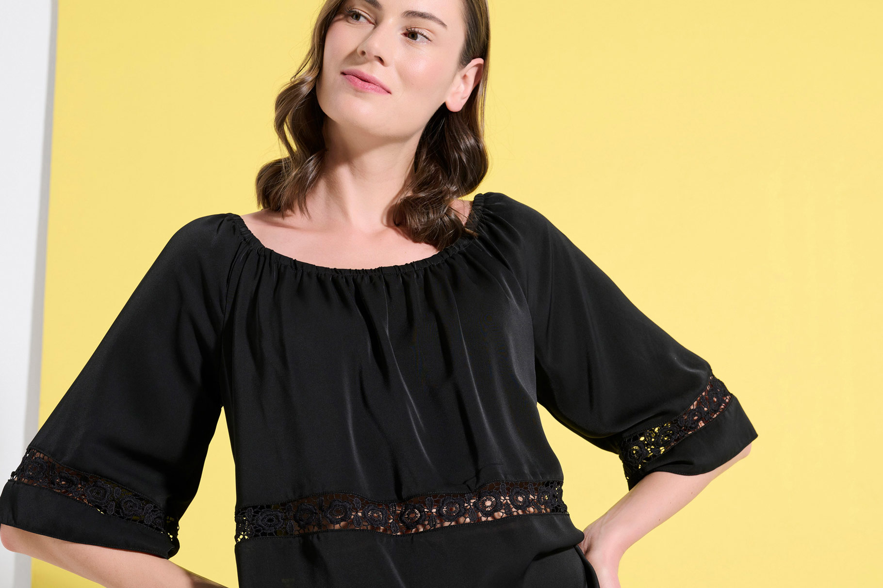 THE MODEL ON THE PHOTO WEARS SMALL AND HER BODY MEASUREMENTS ARE: